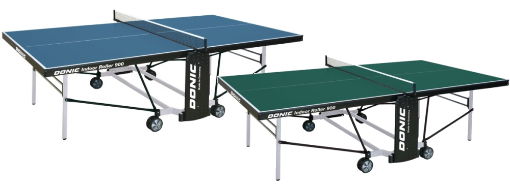 Теннисный стол Donic Indoor Roller 900 относится к категории для использования в помещении. Представлен в двух цветах — зеленом и синем. Есть сертификат безопасности EN 14468.